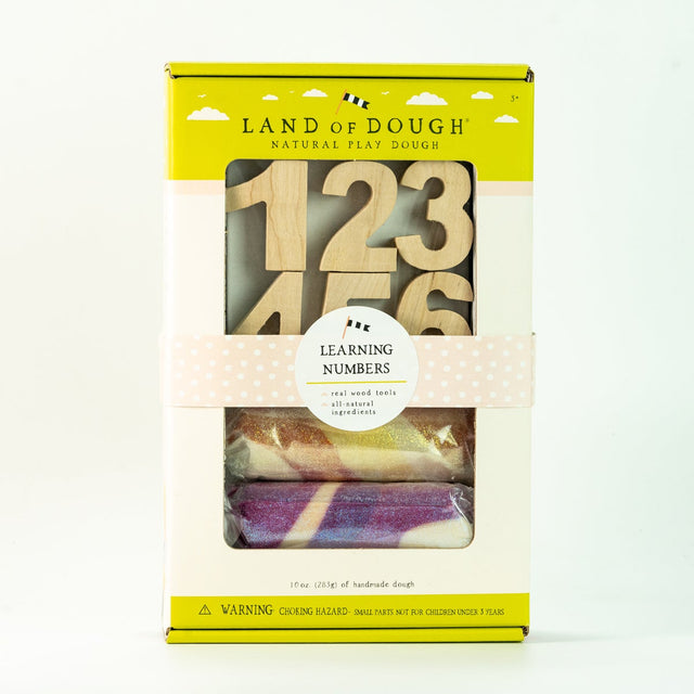 Teach little ones their 1, 2, 3s with a primary set that's anything but basic. Designed for true hands-on learning, this set comes with two charming Land of Dough play dough rolls and a set of wooden numbers. Children will love learning with dough, and caregivers will love the quality, design, and craftsmanship of Land of Dough.