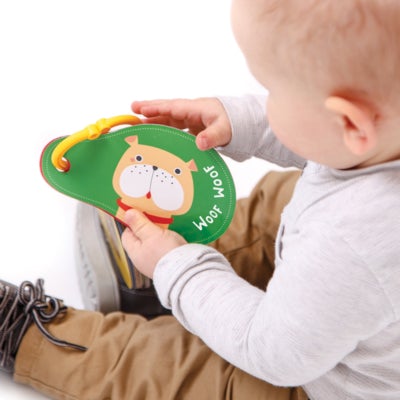 These double-sided flash cards prompt children to imitate the sounds they hear and encourage their first words. Each page features a simple, vibrant illustration and word describing a sound for imitation, which is the right stimulus for capturing a child’s attention at this stage of development. The sturdy pieces are bound together with a ring that can be removed for more convenient use.