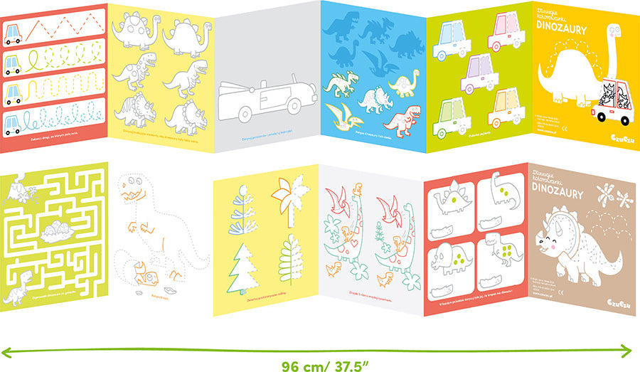 This creative set includes 2 long (37.5"!) accordion books with 2 panoramic pictures to be colored along with lots of creative and educational exercises.