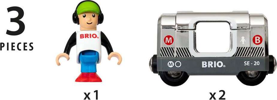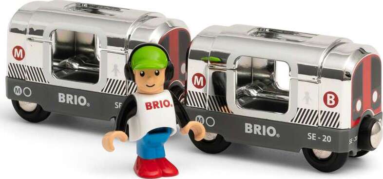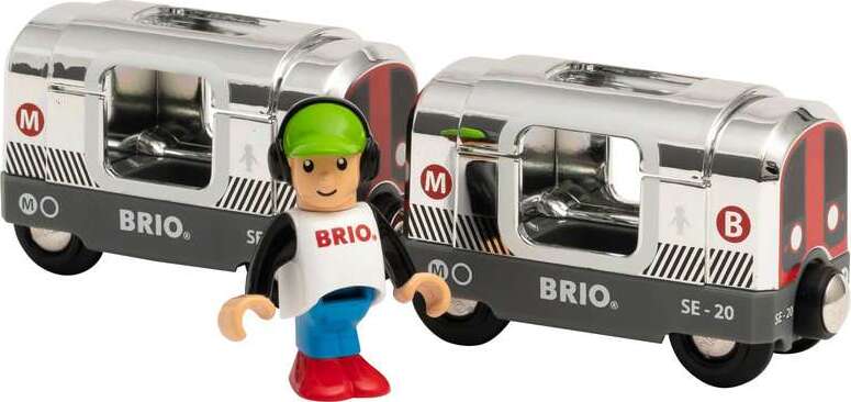 he 33838 Special Edition Train (2020) is an eye-catching addition to any BRIO World railway. This special Metro Train with silver metallic surfaces, realistic graphics and high gloss finish certainly shines as it rides the rails and would look at home in any of the world’s metro networks. Both the metro engine and passenger wagon feature opening doors with space for BRIO World figures, as well as the standard magnetic connections. Don’t miss your opportunity to snap up this limited-edition train complete with play figure wearing modern headphones.
