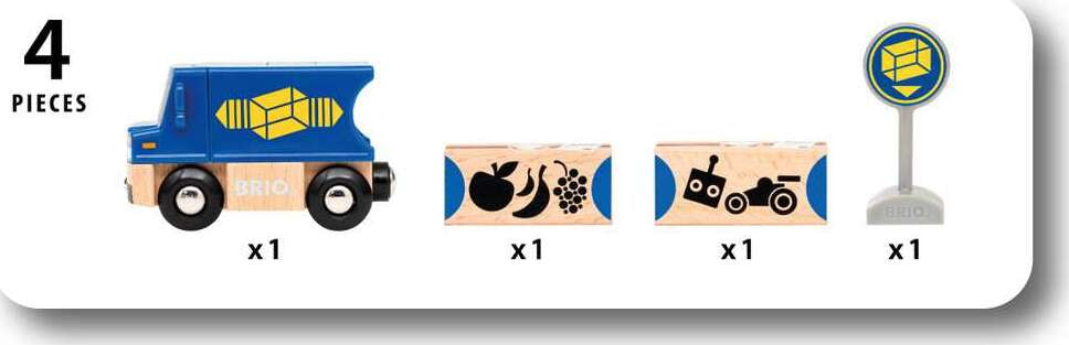 Beep beep! There’s a package for you on board the 36020 Delivery Truck. Stop at the marked delivery spot and unload the wooden goods from the back of the blue toy truck. Then drive to the next delivery, load it up and lock it into position with the help of magnets. It’s a busy day for the BRIO World delivery services so let’s get moving.