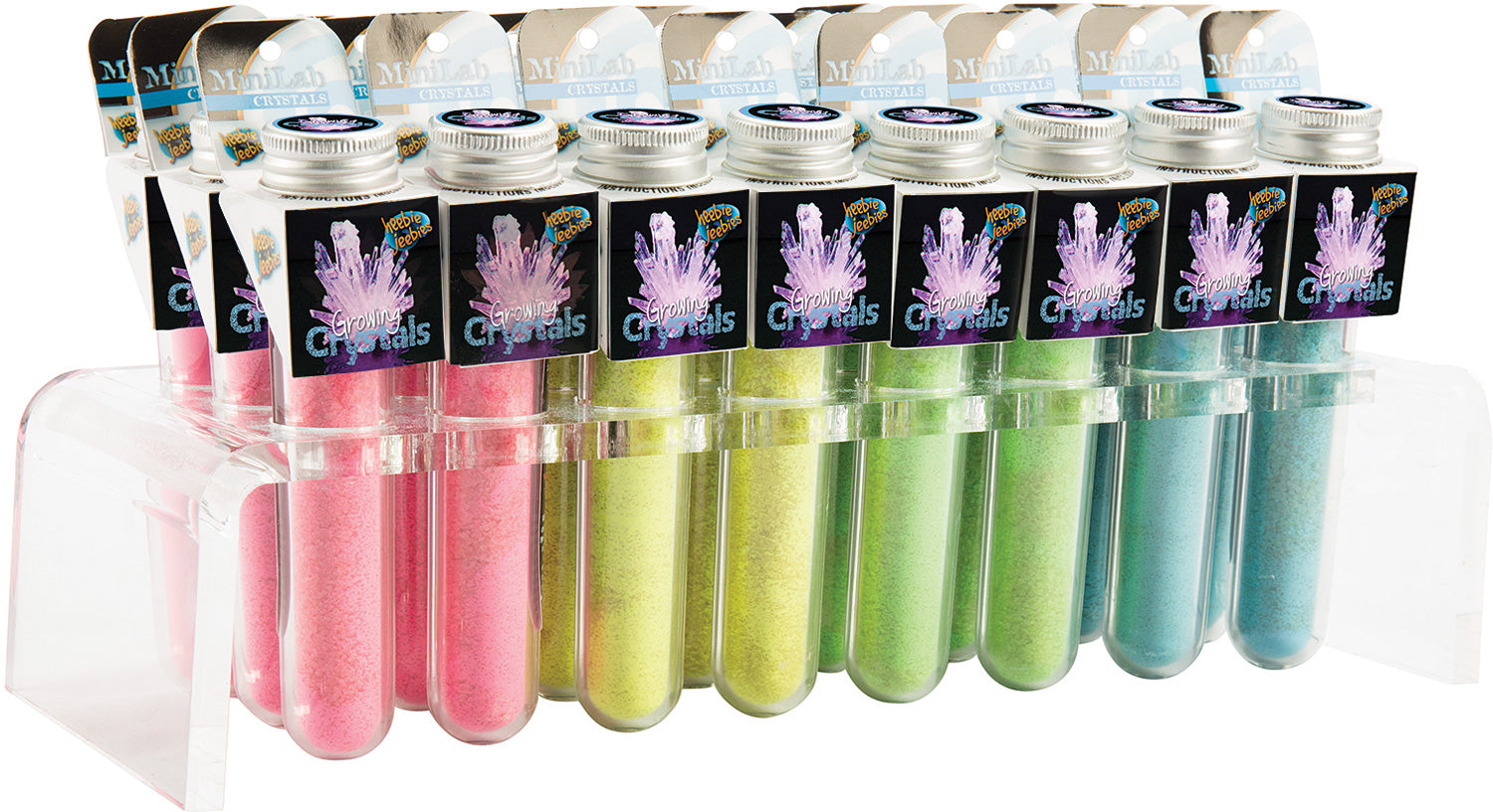 Use the crystal powder provided to grow your own crystals! Assorted colors
