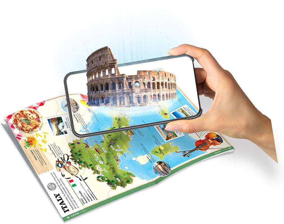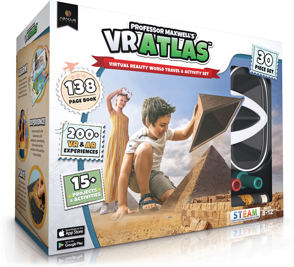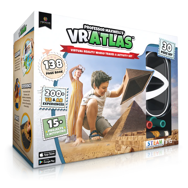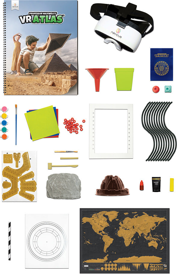 Discover the world in virtual reality with this 138 page interactive, illustrated atlas for kids, as points of interest, landmarks, and world wonders come alive in augmented and virtual reality! This 30 piece set is loaded with projects and activities to inspire tangible play, while discovering cities, cultures, food, currency, language and love from around the world!