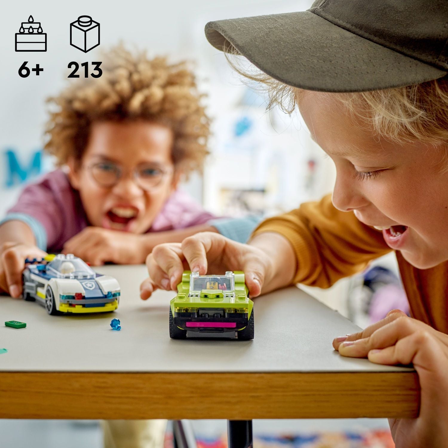 - Police car toy for tire-screeching action – Police pursuits await with the LEGO® City Police Car and Muscle Car Chase playset for ages 6 and up
