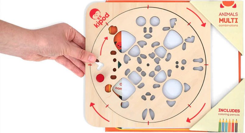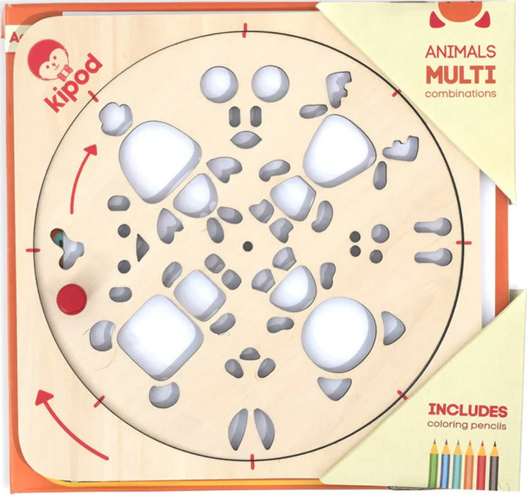 Create unique drawings by rotating the stencil and selecting new combinations at every turn. Interchangeable stencil that lets the child create hundreds of different drawings.