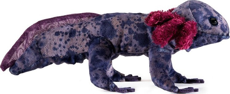 Native to Mexico and known as little "water monsters," axolotls are curious creatures. Dark hues of purple with fuchsia accents and a movable head distinguish the Folkmanis Black Axolotl puppet. Learn about this amazing amphibian up close and personal with this extraordinary plush plaything.