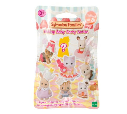Baby Cake Party series are collectible figures. Each blind bag contains one Calico Critter baby figure and sweet accessory. Collect all 8 styles - each sold separately.