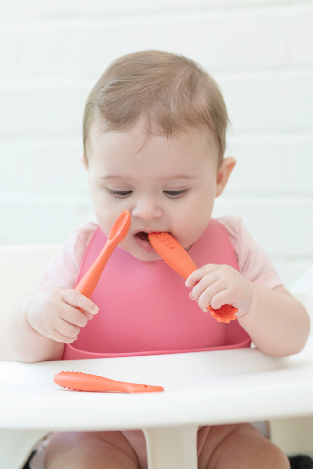 - Three different utensils to help babies and toddlers practice their feeding skills. Each utensil has sensory bumps for oral exploration and tactile input. They were designed for little hands and are easy to hold.