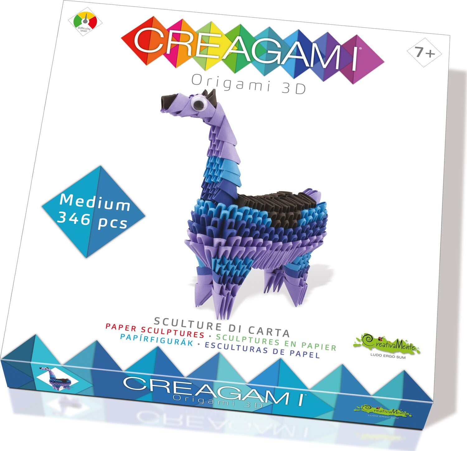 Creagami is a kit for creating modular origami. This centuries-old Japanese art, which consists of folding sheets of paper in order to create colorful sculptures, stimulates the development of creativity and is often used to relax.