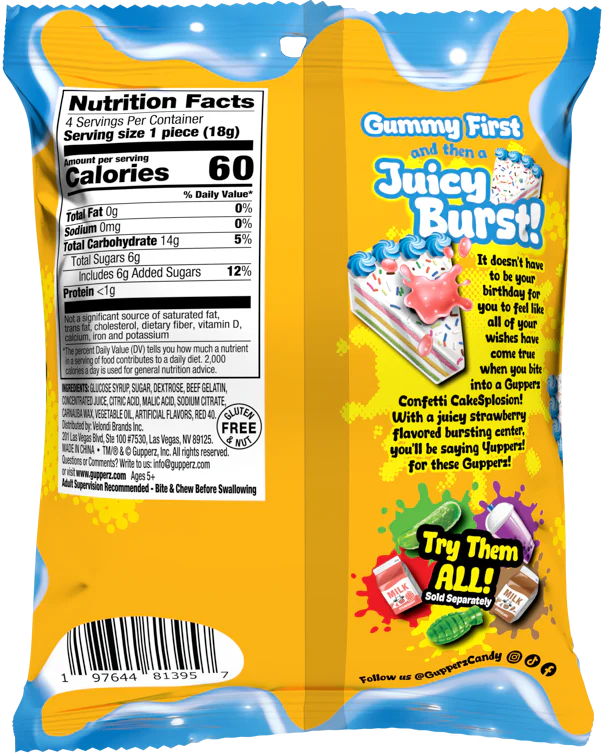 With a juicy strawberry flavored bursting center, you’ll be saying Yupperz! for these Gupperz!