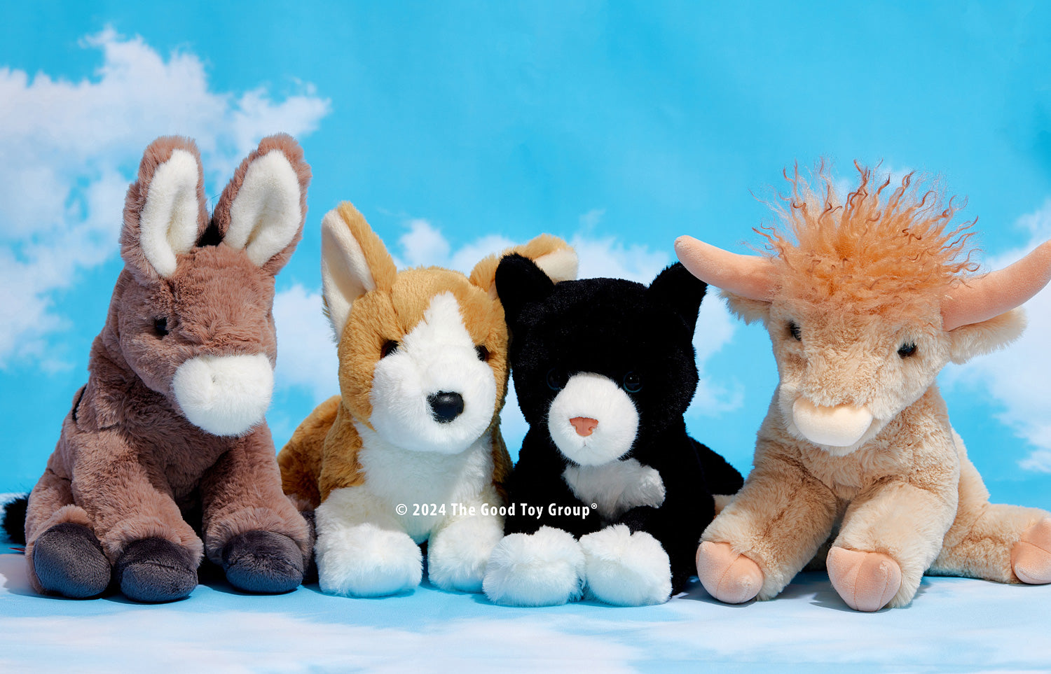 Jackie the Soft Donkey stuffed animal brings her own brand of mirth to the barnyard! With her jovial nature, this little plush longear finds a way to keep everyone on the farm on their toes. Braying loudly and chasing the other animals around the pen are two of her favorite amusements.