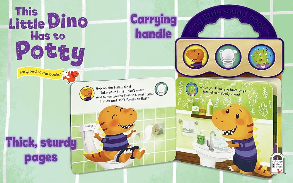Everybody potties, including boys, girls, and dinos! Follow along with the dinos as they learn what to do when they have to go—whether at home, the library, or the store. Press the potty-themed buttons to hear a fun toilet flushing sound, a dino giggle, or a happy tune. This interactive, rhyming story will get any little one excited about potty time.