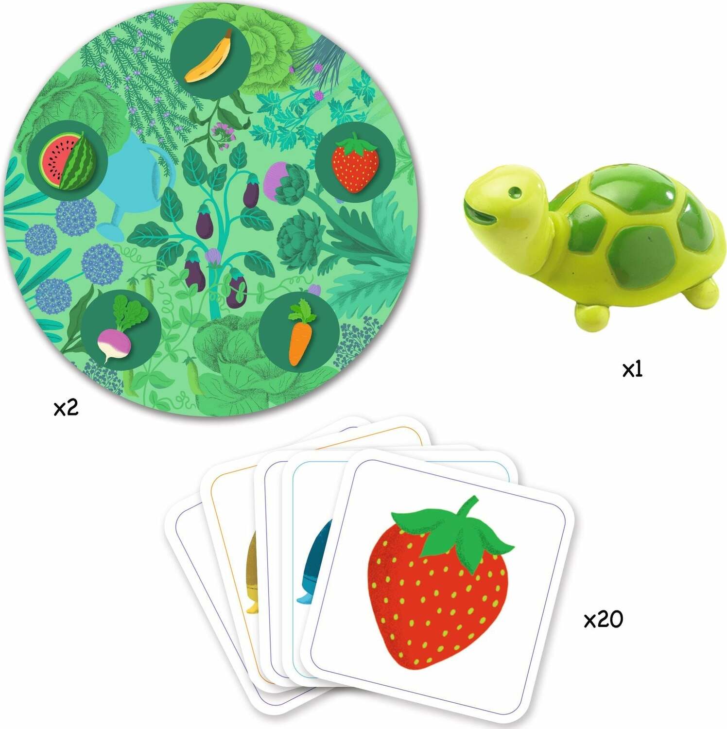Contents: 1 board made of card, 20 cards and 5 vinyl figurines, and 1 set of game rules in 10 languages.