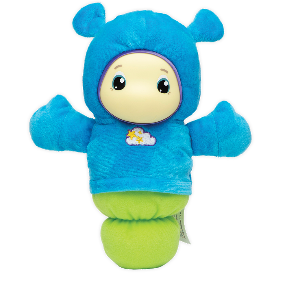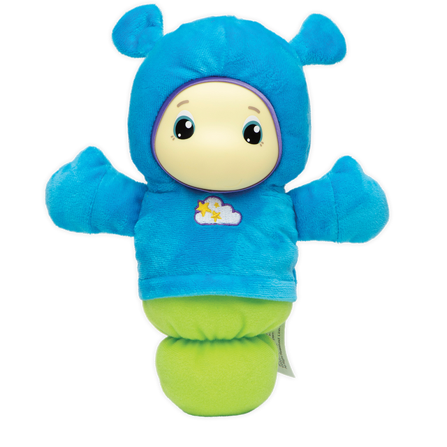 Press the cloud on Playskool’s Blue Lullaby Glo Worm to play familiar lullabies and activate Glo Worm’s soothing glowing face. With 3 modes, Glo Worm can cycle through 6 different lullabies, play music and glow for 10 minutes continuously, or just glow comfortingly without sound for quiet time. Playskool toys are thoughtfully designed with babies and their parents in mind. That’s why Glo Worm has volume control settings so parents can choose how loud or soft to make the lullabies, and simple cleaning instructions to keep Glo Worm cuddly and comforting through all of life’s messier moments.