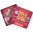 The convenient 6 3/4″ square tin case makes it easy to slip the games into most bags to take everywhere and keep kids entertained on a trip, waiting at the doctor’s office, dining out, while stuck in traffic or just visiting grandma’s house!