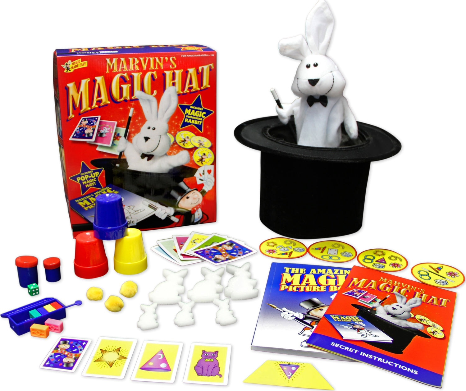 Young magicians really can pull a rabbit out of a hat! A deluxe magic pop-up top hat you can wear, plus a cute appearing rabbit that can be used as a glove puppet, but also performs amazing magic tricks with you!