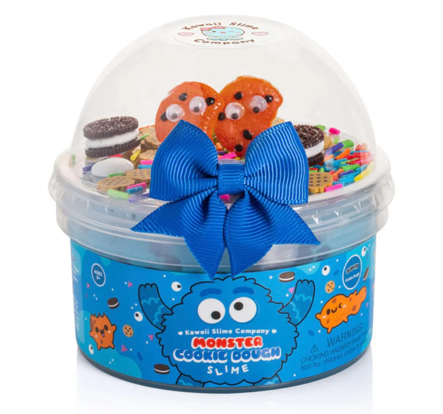 Indulge in the deliciously comforting Monster Cookie Dough Slime! This fun Slime combines a soft dough Slime texture with an irresistible cookie dough scent. With googly eye chocolate chip cookie and sandwich cookie charms, plus a sprinkling of inspired toppings, this vibrant blue Slime is the perfect way to satisfy your senses! (No actual monsters were harmed in the making of this slime.)