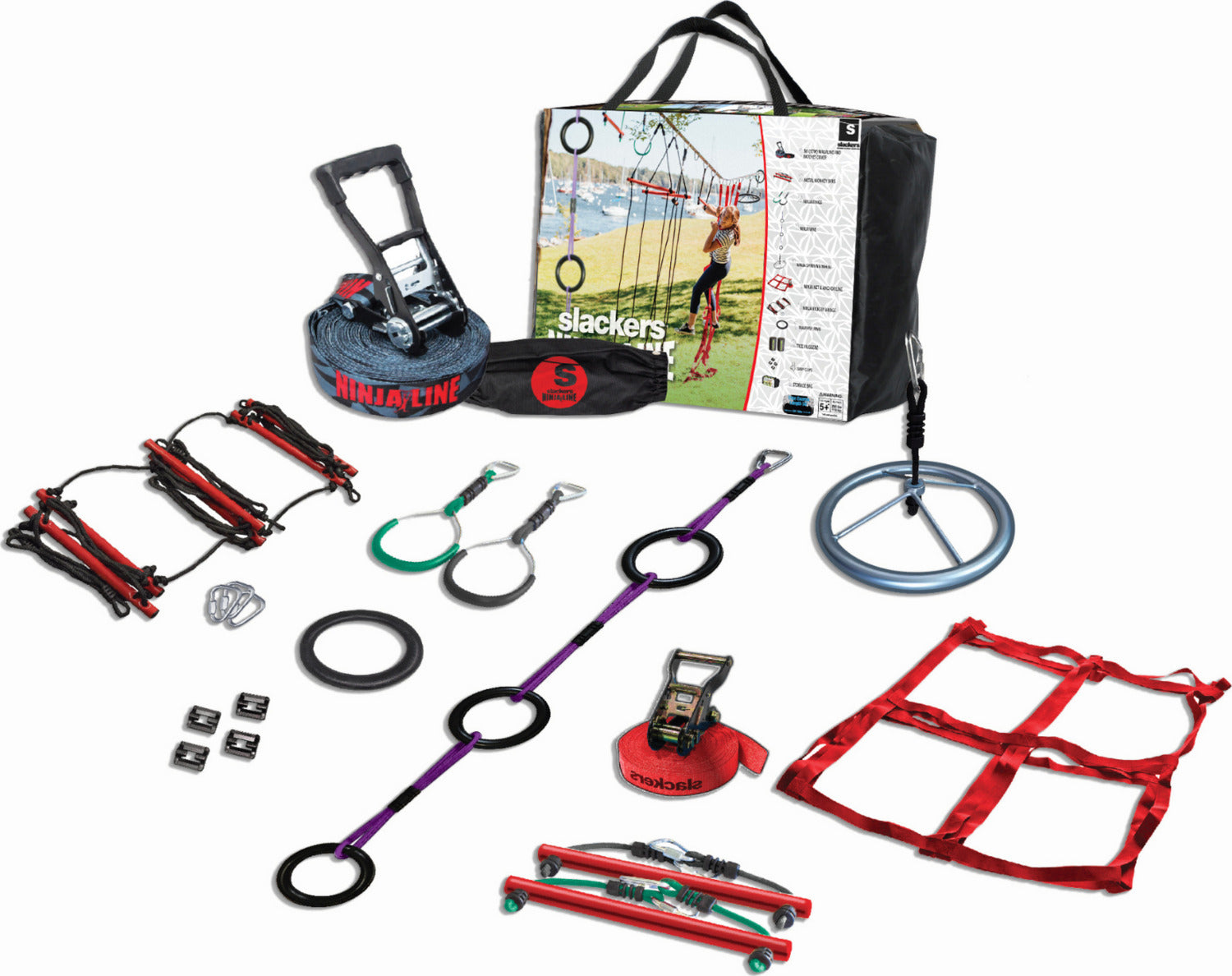 - 10 fun and unique hanging obstacles designed and manufactured by Slackers exclusively for the Slackers Ninjaline.