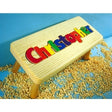 Help your little one reach for a bit of independence and learn to spell his or her name too. Each letter is brightly colored with non-toxic paint and has smooth easy to fit edges. Available in primary, jewel or pastel colors (shown in Jewel), stool measures 8 x 13-15 3/4 x 8 in high to fit names from 1 to 11 letters. Stool size varies according to number of letters in the name. Letters are 3 1/2 inches for upper case and 2 1/2 inches for lower case.