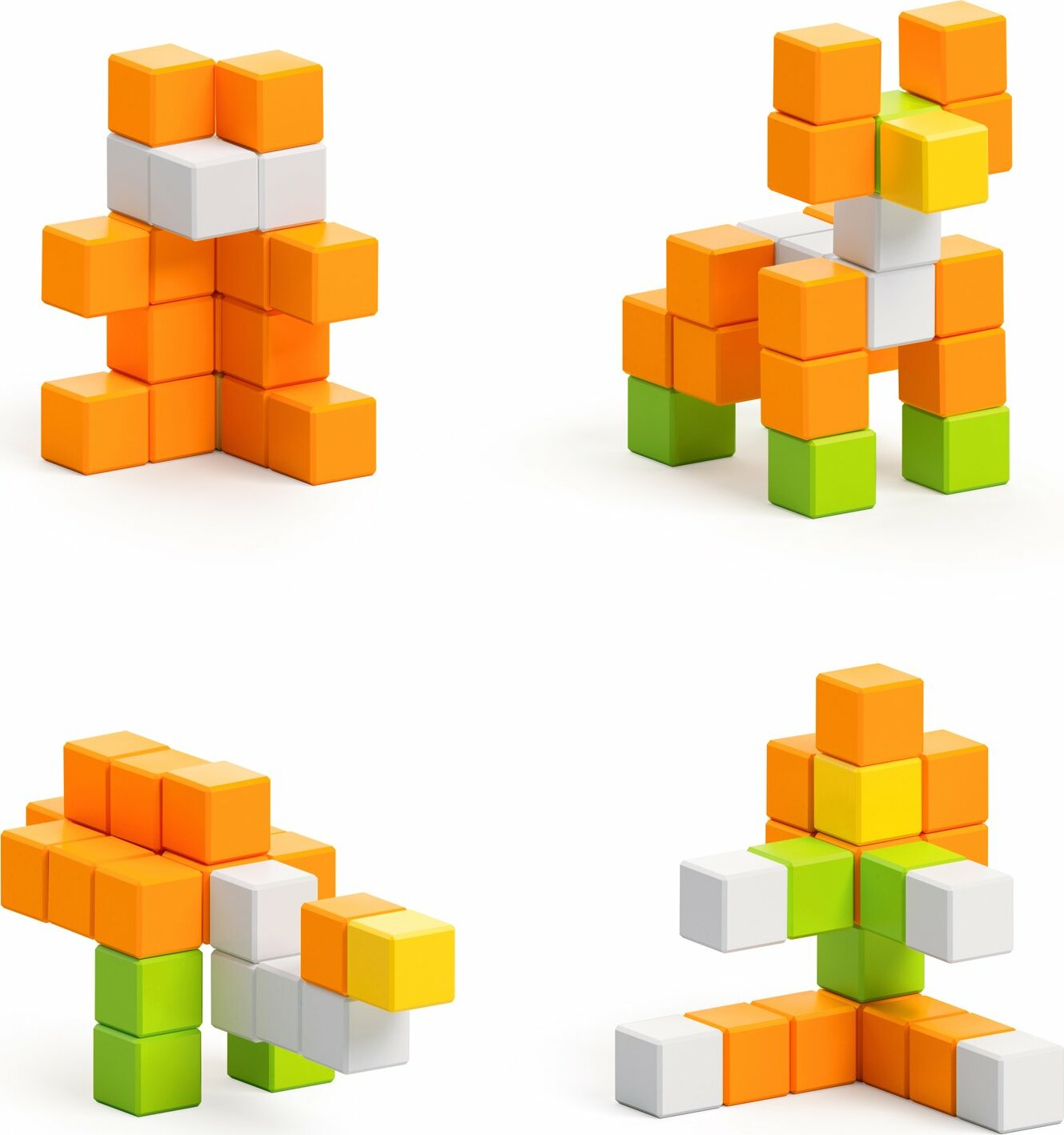 Age: 6+ 24' magnetic pixio-blocks 4' colors This pixelated yet delicate flower can be turned into at least 10 different cute and intriguing characters. Assemble amazing creatures that add a little kindness and beauty to the world. Youall get 24 PIXIO blocks in 4 colors to create a delicate flower, a woman, a little teddy bear, a funny lemur, and a camel thatas orange from head to toe. PIXIO is a unique construction set in which magnetic blocks are connected thanks to a well-thought-out system of magnets. One PIXIO block is a plastic cube 8 x 8 x 8 mm in size and has inside 6 magnets. Blocks can be connected to each other in any sequence from different sides. Just take the PIXIO block in your hand and place it where you want it to be - BANG! - the PIXIO block is connected.
