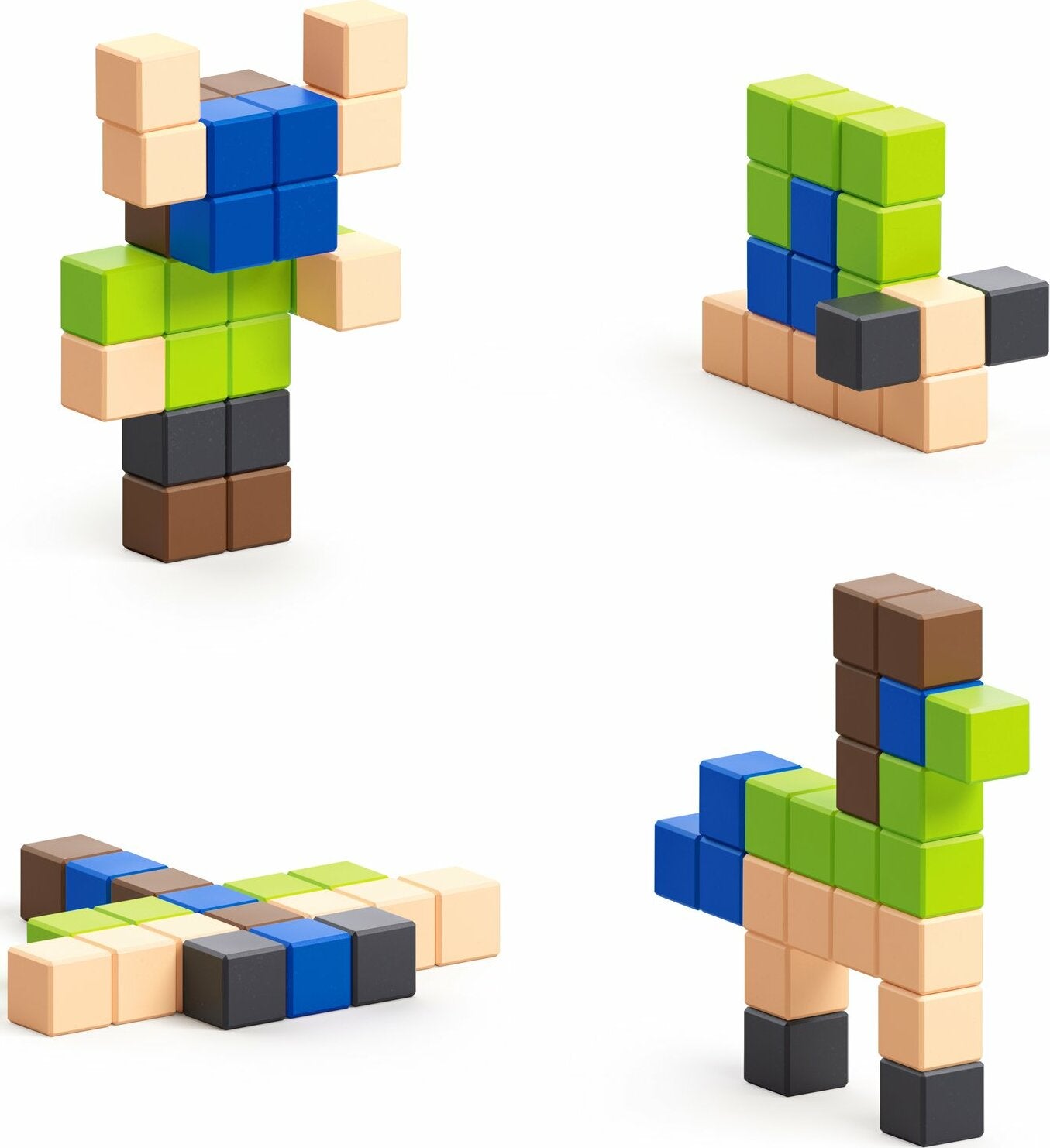 Age: 6+ 24' magnetic pixio-blocks 5' colors This little PIXIO Man can turn into at least 10 more characters. Choose what kind of object to build with your PIXIO blocksa"real or mythical. Youall get 24 PIXIO blocks in 5 colors to bring your imagination to life. This is the perfect number of PIXIO blocks for creating a man, a snail, a dragonfly, a chameleon, an ostrich, a dinosaur, a heron, or even a minotaur. PIXIO is a unique construction set in which magnetic blocks are connected thanks to a well-thought-out system of magnets. One PIXIO block is a plastic cube 8 x 8 x 8 mm in size and has inside 6 magnets. Blocks can be connected to each other in any sequence from different sides. Just take the PIXIO block in your hand and place it where you want it to be - BANG! - the PIXIO block is connected.