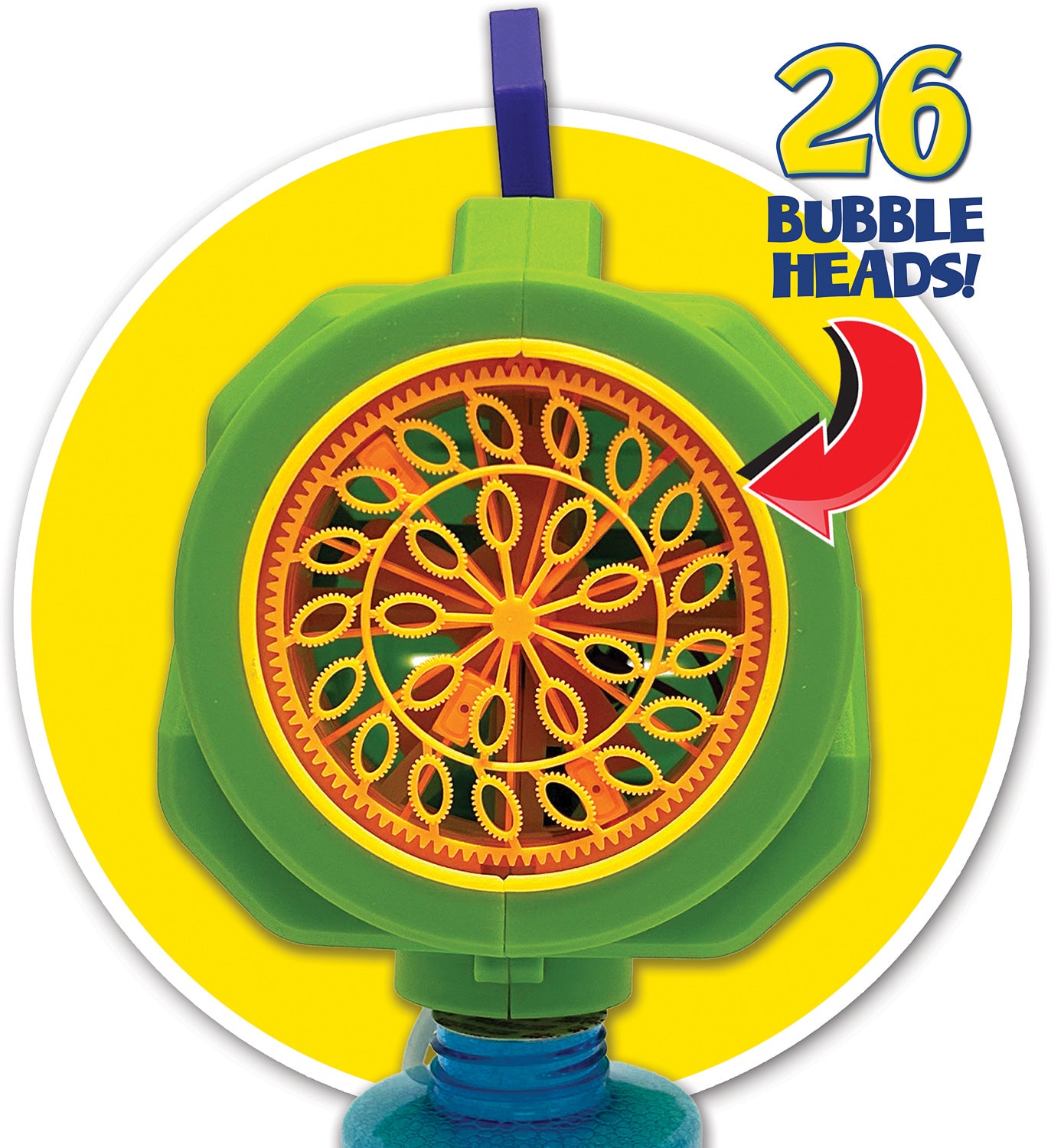 Bye bye batteries, hello endless bubbles! We are obsessed with this super-powered bubble blaster for so many reasons. It's perfectly sized for little hands, it blows bajillions of continuous hyper-action bubbles, it has a folding carry handle, it's super powerful, and it's RECHARGEABLE! Using the included charger, one charge will last for hours of outdoor bubble blasting and popping. The blaster comes with bubbles but you can refill the chamber with any bubble solution. Rechargeable lithium ion battery included.
