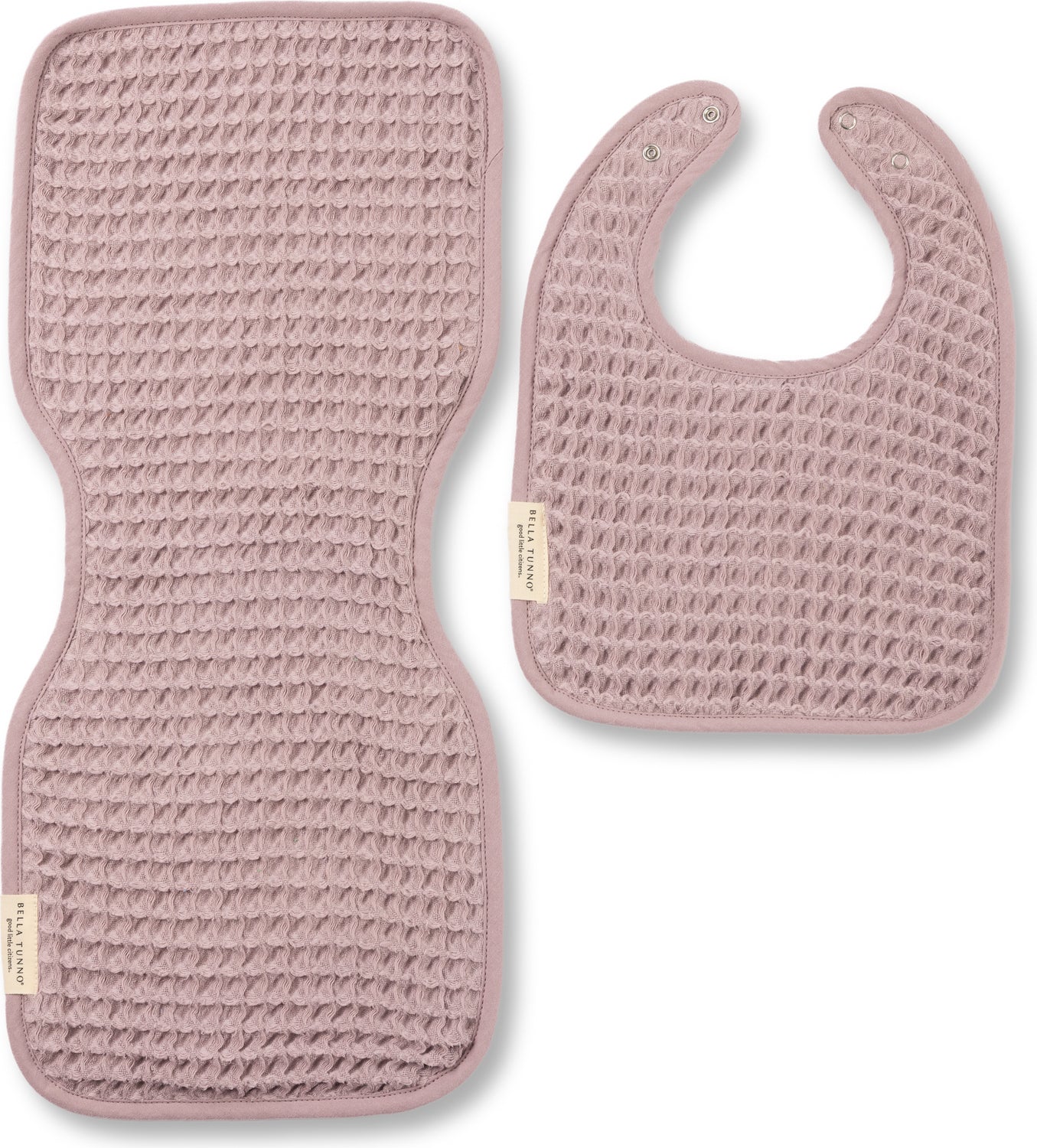 - Includes 1 reversible bib and 1 reversible burp cloth