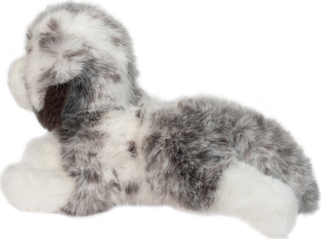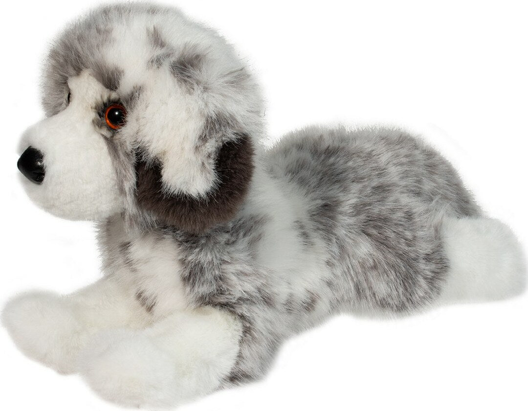 Lovable and soft, Skylar, Douglas' DLux Australian Shepherd stuffed animal showcases the bi-blue variation of the breed's popular blue merle coat pattern! High quality plush materials depict the attractive gray and white marbling, while resilient polyester fill and weighted paws create a floppy friend who's as fun to pose and play with as she is to hug and cuddle.