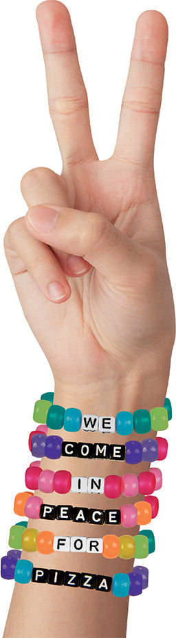 Wear your story on your wrist when you design a message or name bracelet using the alphabet beads in the Tell Your Story Alphabet Bead Case from Fashion Angels. Get creative when designing the bracelets using the variety of bead shapes and colors included in this set. Choose from tablet shapes or cubes in multi-color and metallic finishes. We have also included roller beads to add a special touch to your bracelet design. Also find 4-yards of black elastic cording, enough to make 12 bracelets or more. All come packaged in a clear plastic divided keeper box perfect for bead storage and travel. Kit includes: 36-grams of 9mm roller beads in a variety of colors, 9-grams of black tablet shaped alphabet beads, 9-grams of white tablet shaped alphabet beads, 9-grams of tablet shaped alphabet beads in a variety of colors, 7-grams of cube shaped silver metallic alphabet beads, 7-grams of cube shaped black alphabet beads, 7-grams of cube shaped white alphabet iridescent beads, 4-yards of black elastic cording to make 12+ bracelets, plastic keeper box, inspiration sheet, and instruction sheet.