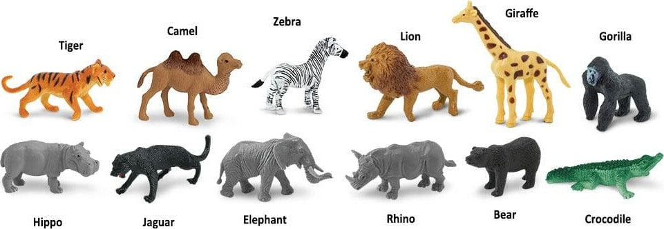 Brace yourself for a trek deep into the heart of the jungle to observe some of the most amazing animals found in nature. Safari Limited's Wild Toob includes a giraffe, bear, tiger, camel, lion, crocodile, gorilla, hippo, rhino, zebra, panther and an elephant.