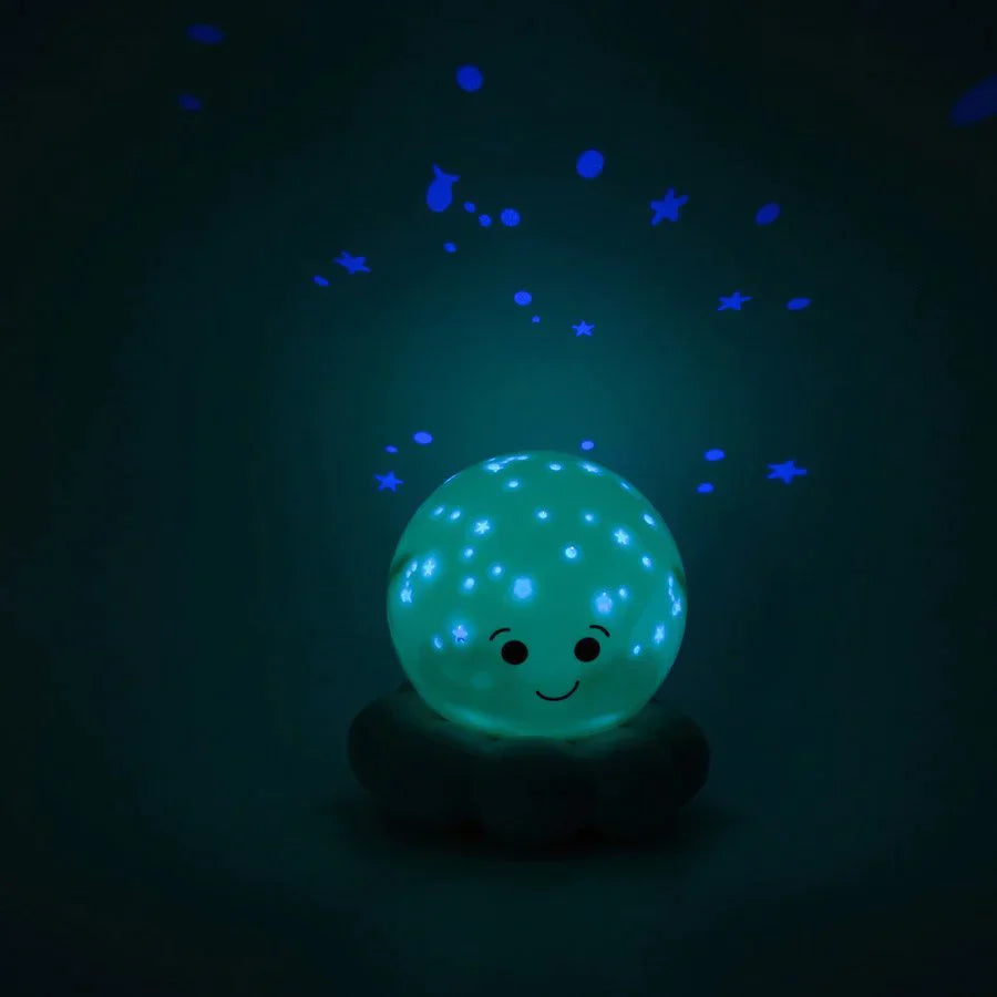 Twinkles To Go Octo™ was made for traveling, transforming any dark, scary new place into an underwater dreamland and making your little bug feel all snug and sleepy. Our bubbly octopus night light is bound to be an absolute must-have for traveling families - whether in the backseat, or the hotel suite! Twinkles glows soft bubbling fish and stars night after night. Twinkles features LED lights that keep the Octo's body cool, safe and long-lasting. And, with no cords to tangle with, Twinkles is always ready to travel. This incredibly lightweight, traveling nightlight has one on/off button. Press the button twice to change color setting. After 45 soothing minutes of stars and fish, an auto shut-off feature turns Octo off. Sleep is just a little bit sweeter with this glowing octopus who encourages quality, restful sleep. Bring all the comforts of home on the road with Twinkles To Go Octo™!