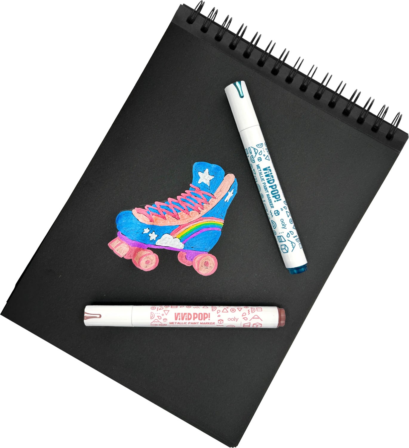 Add a burst of metallic shine to your artwork with the Vivid Pop! Water Based Paint Markers - Metallic Set of 8. These vibrant, non-toxic markers are perfect for creating on various surfaces, including paper, wood, glass, and more. With water-based, quick-drying ink, they offer smooth coverage and are easy to clean off non-porous surfaces. Ideal for artists, crafters, and kids, these markers bring bold color and shimmer to every creative project. Suitable for ages 5 and up, this set makes an excellent gift for budding artists.