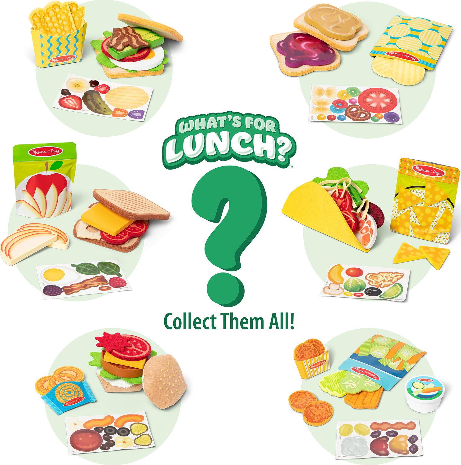 • Collectible surprise toy: wooden and felt play food set in a lunch bag with one of six possible play lunch meals