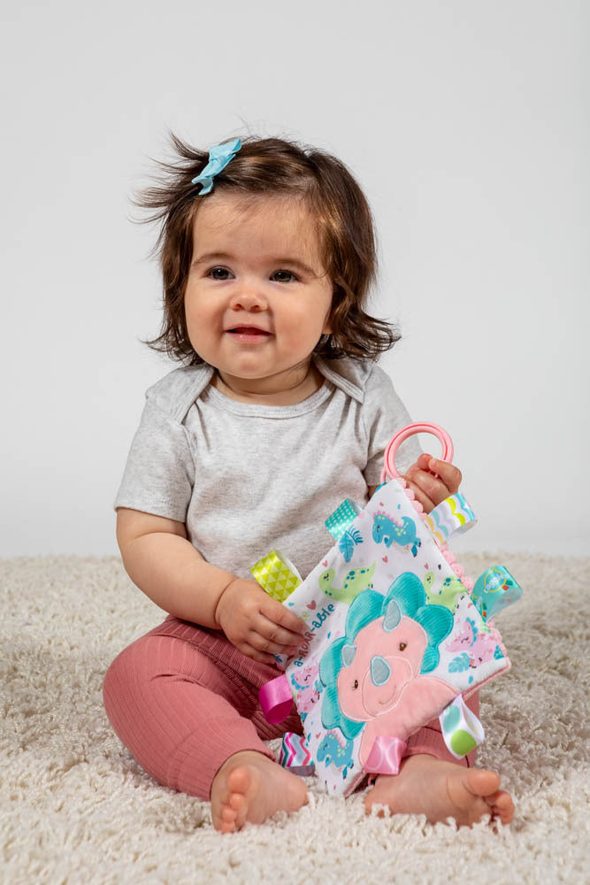 A true standalone item - Taggies crinkle squares are winning awards for their combination of stimulation (squeaker and crinkle paper inside) and soothing features (eight Taggies ribbons and textured fabric appliques).