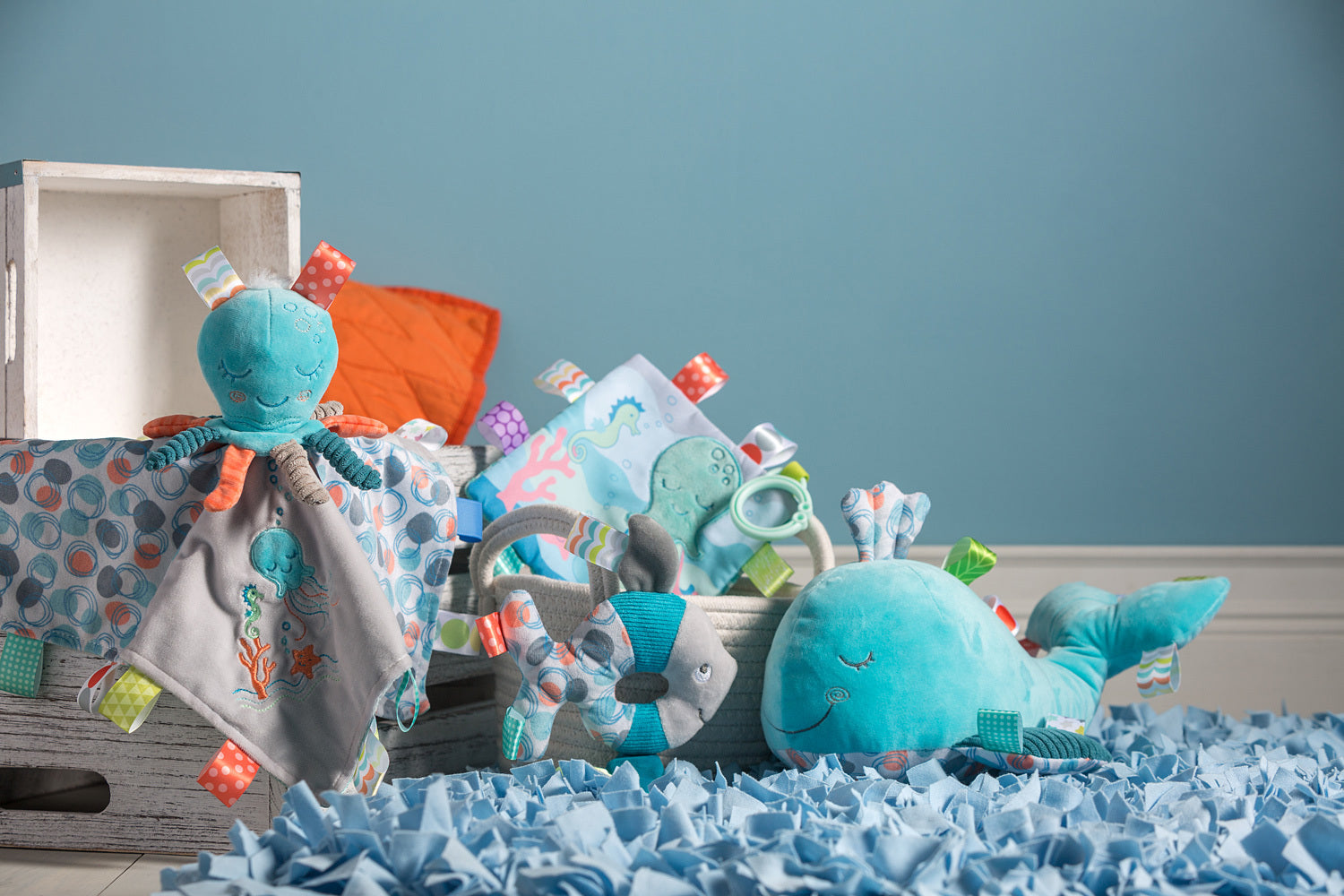 Ocean animals, especially in this lush aquamarine color, are hot right now. Taggies fans have always loved a punch of color. These toys are sure to swim into people’s hearts.