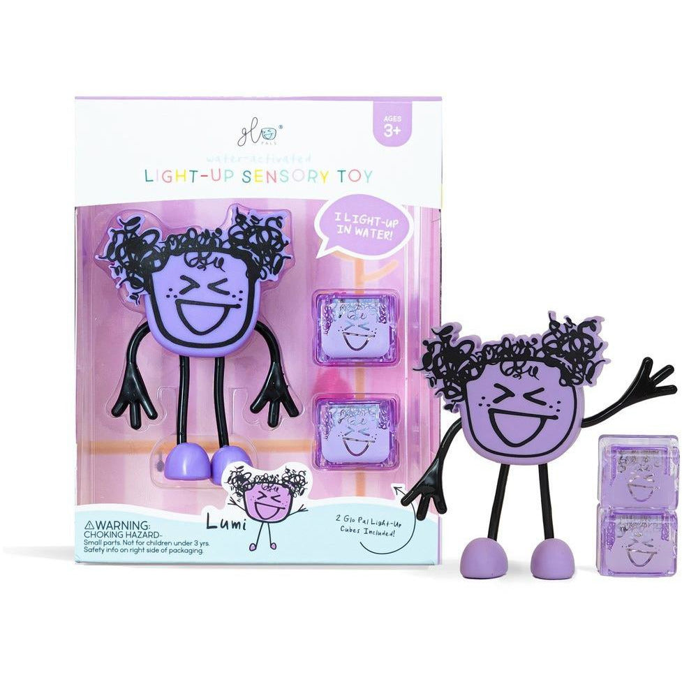 Insert your Glo Pals Light-Up Cube into the back of each Pal, drop it in the water, and watch it light up! Featuring bendable arms and colorful personalities, each Pal proudly illustrates the uniqueness in every child! Lumi comes with two Glo Pals Light-Up Cubes included in the box!