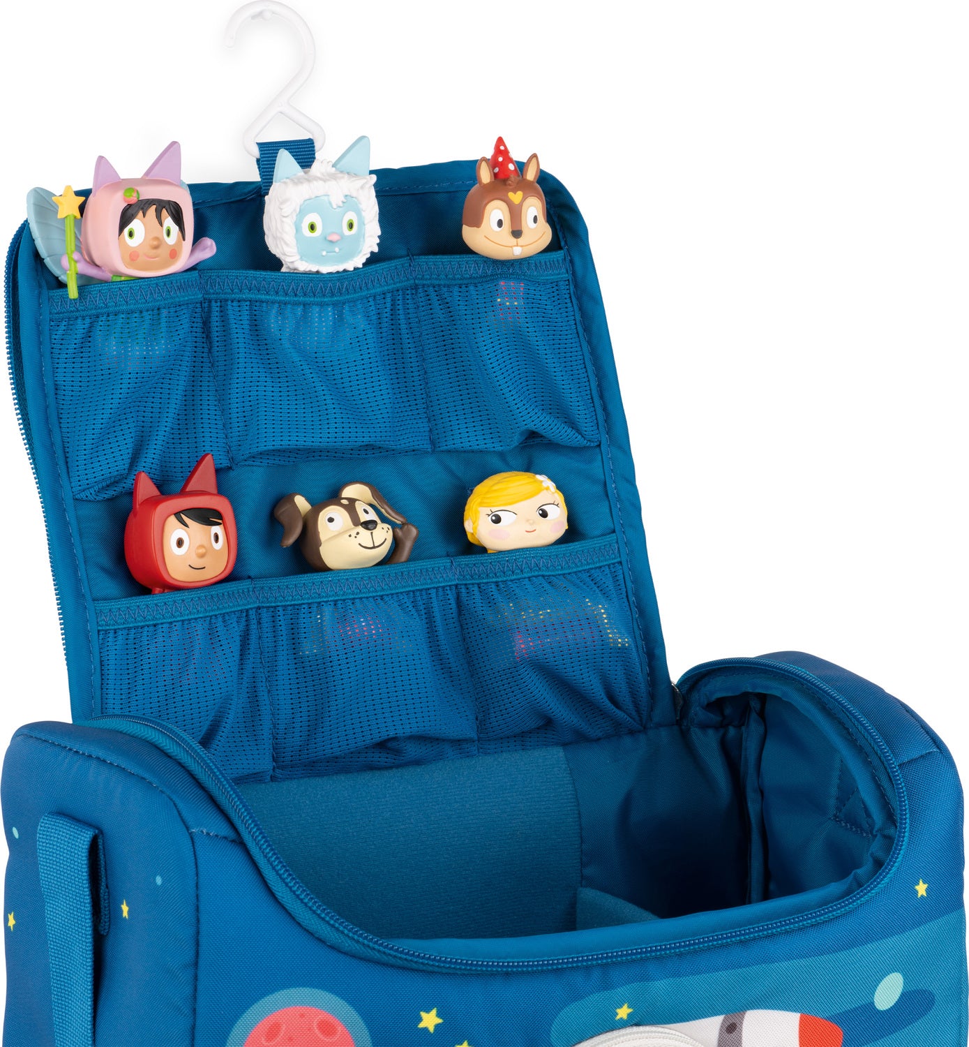 Blast Off through the galaxy with your Tonies! You want to take your Toniebox, Tonies, headphones, charging station and other treasures with you on a trip? No problem! With the Listen + Play Bag you can easily transport your beloved Tonies collection in one bag! Whether you have a long journey with your family or a short car ride to the park and you just can't wait for Tonie time, don't worry about unpacking all your Tonies in the car / train / plane. You can simply open the loudspeaker flap and pop a Tonie on the Toniebox, for easy fun on the go!