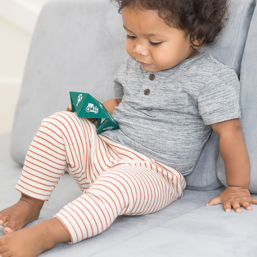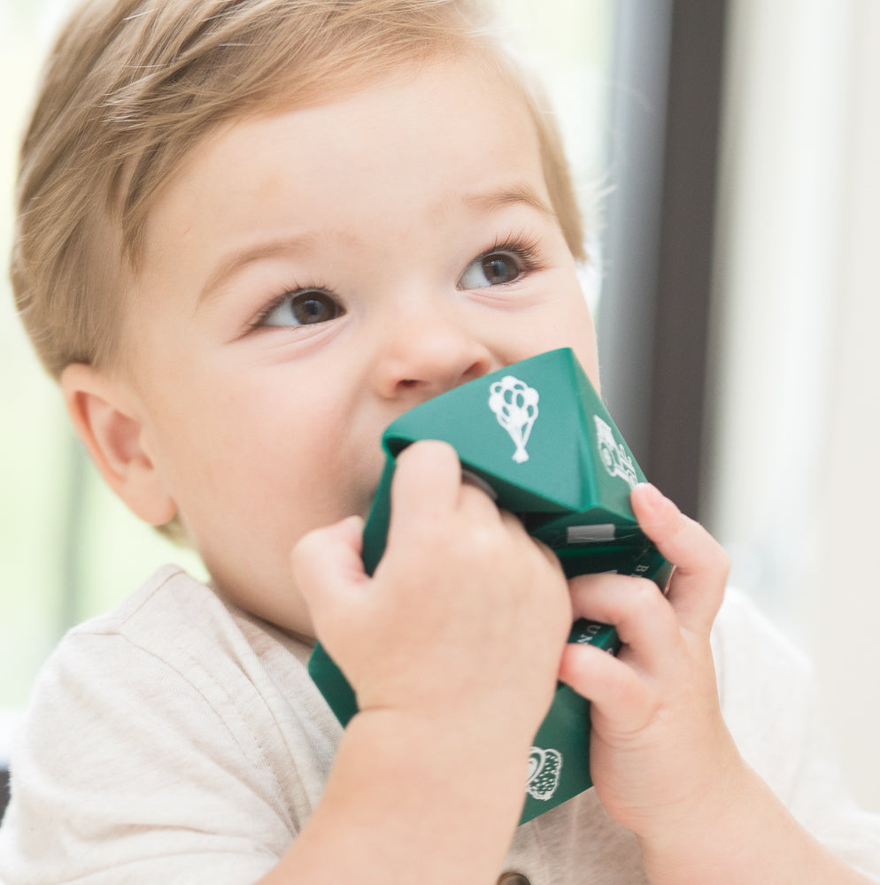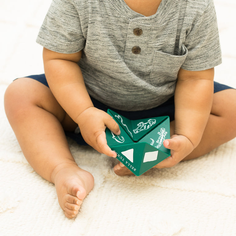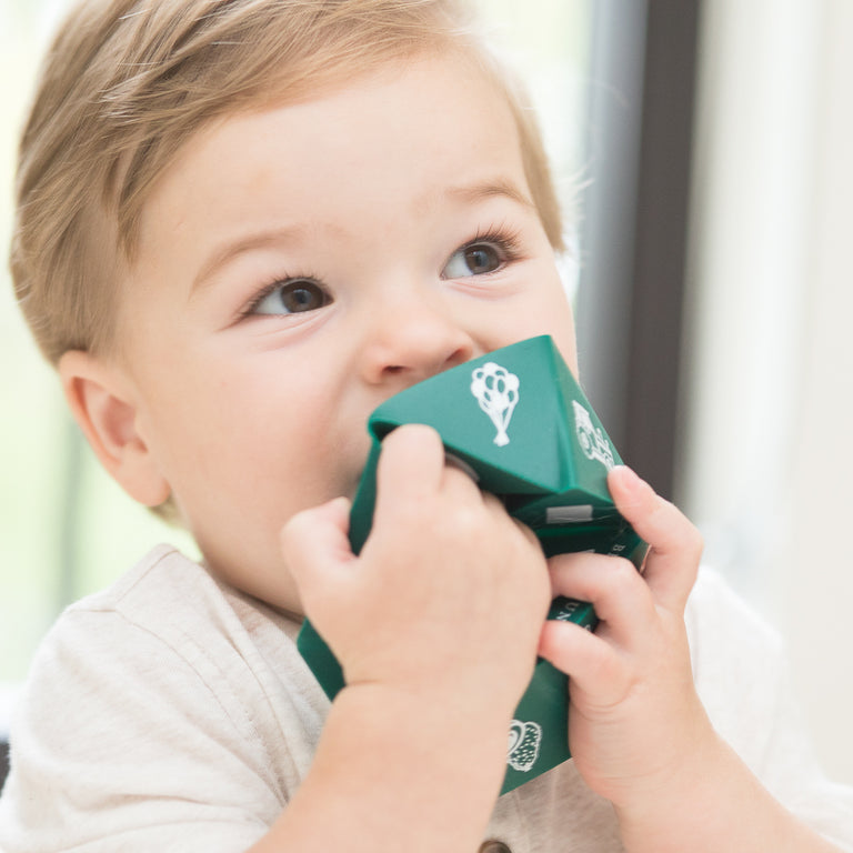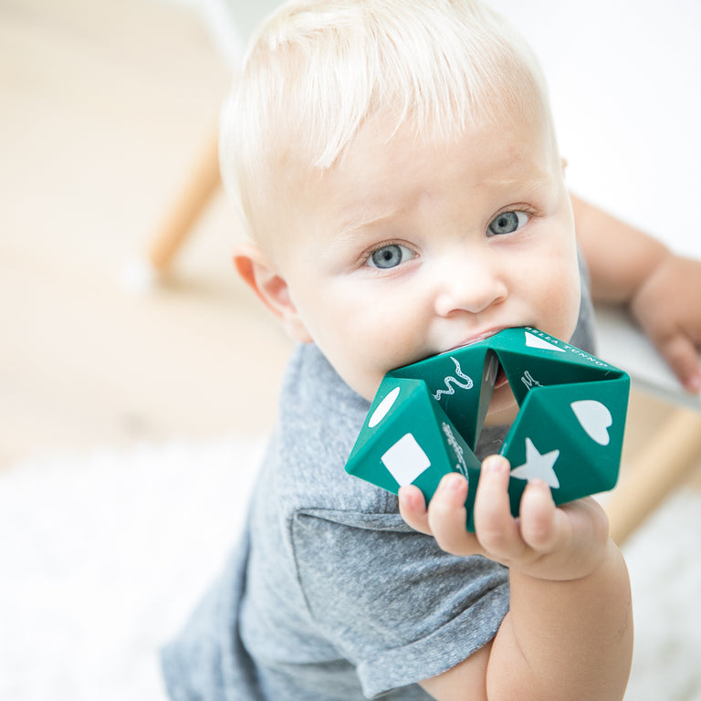 The Beginner Spinner is a unique teething and learning exploration toy designed to grow-with-baby. It’s safe to chew on and the mix of points, creases and smooth surfaces provide multiple relief options for sore gums and little teeth.