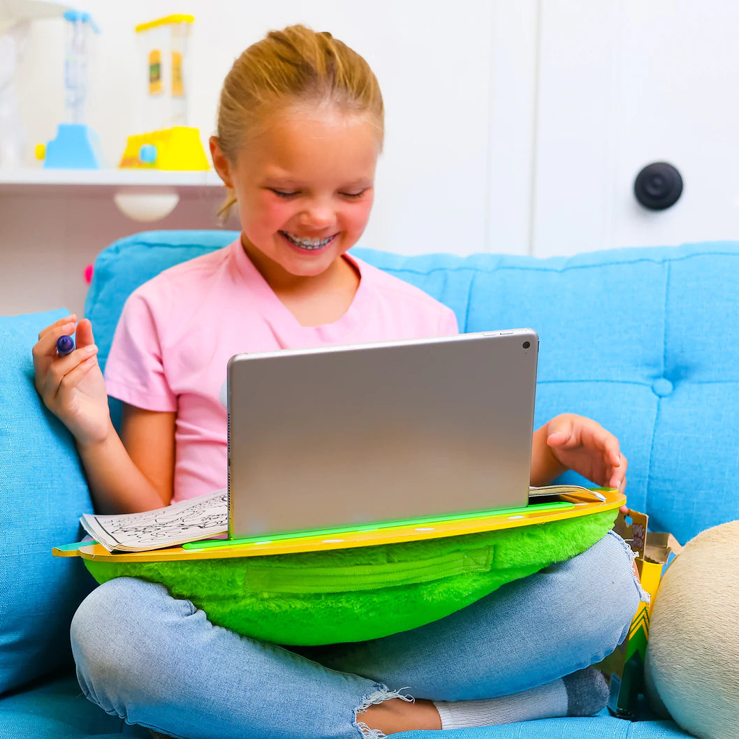 The surface of the Cheeseburger Lap Desk offers an inviting space for your child to get their creative juices flowing. The built-in device slot is perfect for tablets or smartphones up to 11 inches wide, freeing up even more of the generous surface area for writing, snacking, reading, artwork, and gaming.