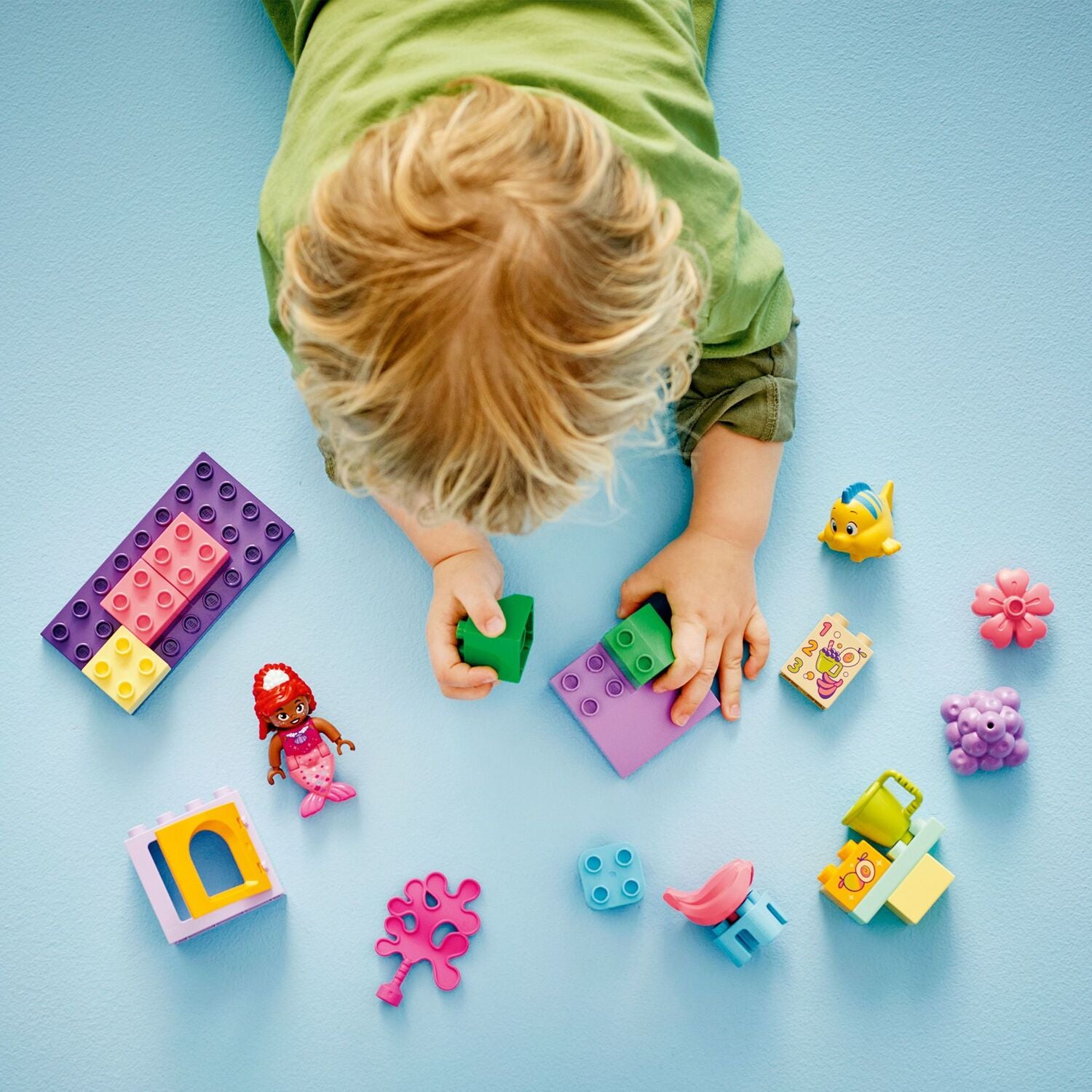 - Construction toy for Little Mermaid fans aged 2+ – LEGO® DUPLO® | Disney Ariel and Flounder's Café Stand building toy with fruit elements for fun food play for toddlers