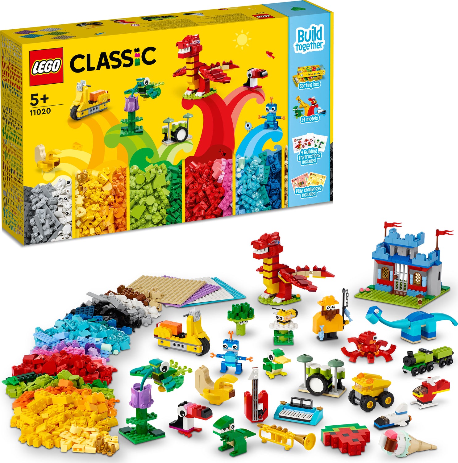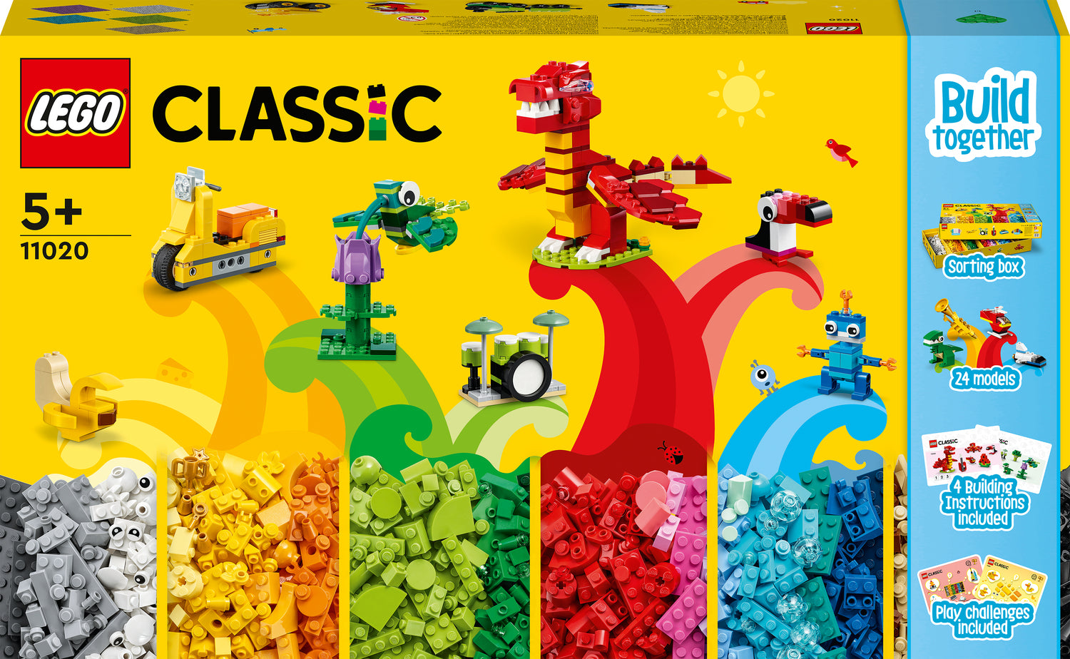 - LEGO Classic Bricks set with 5 colourful LEGO base plates, 4 standard builds and 20 mini build ideas, 2 challenge cards and lots of extra bricks!