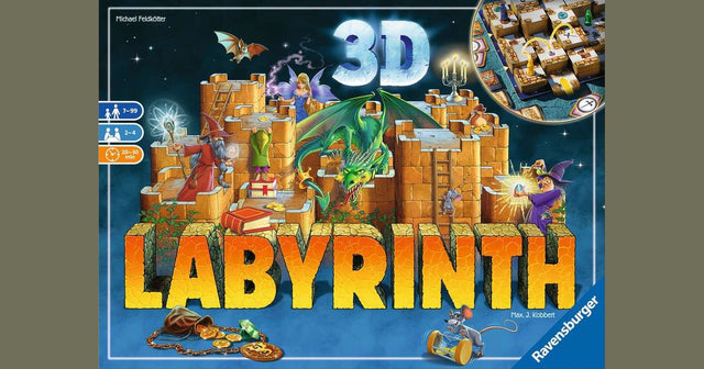 3D Labyrinth features gameplay familiar from the decades-old Labyrinth board game. The game board has a set of tiles fixed solidly onto it; the remaining tiles that make up the labyrinth slide in and out of the rows created by the tiles that are locked in place. One tile always remains outside the labyrinth, and players take turns taking this extra tile and sliding it into a row of the labyrinth, moving all those tiles and pushing one out the other side of the board; this newly removed tile becomes the piece for the next player to add to the maze.