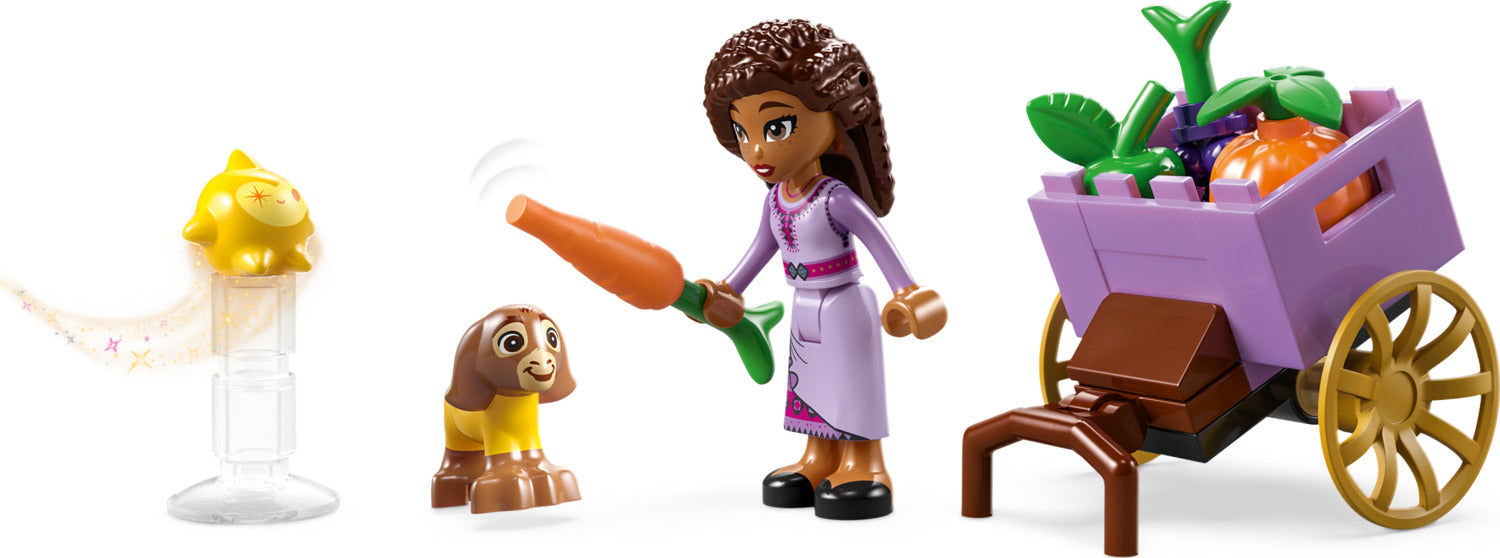 - Fun characters – Includes an Asha LEGO® ǀ Disney mini-doll figure and Valentino and Star LEGO ǀ Disney figures. This set, based on the upcoming film from Walt Disney Animation Studios, Wish, is made for adventures in the City of Rosas market