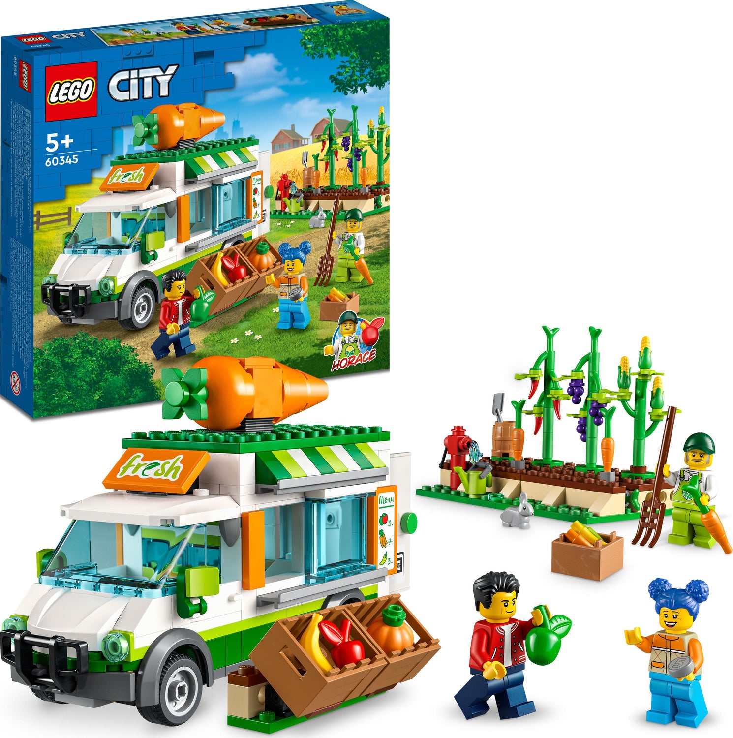 - Join LEGO City adventures character, Horace and 2 other included minifigures for a fun day working on the farm and riding in the LEGO food truck