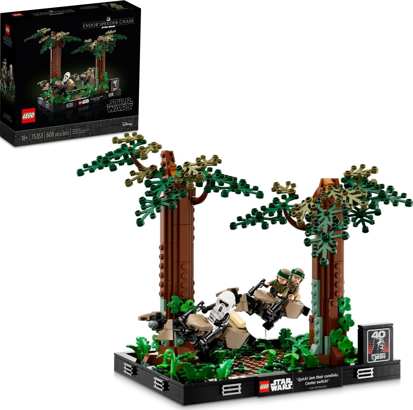- Detailed Endor Speeder Chase Diorama (75353) – Create a dynamic LEGO® brick-built snapshot of the iconic speeder chase through the forests of Endor from Star Wars: Return of the Jedi