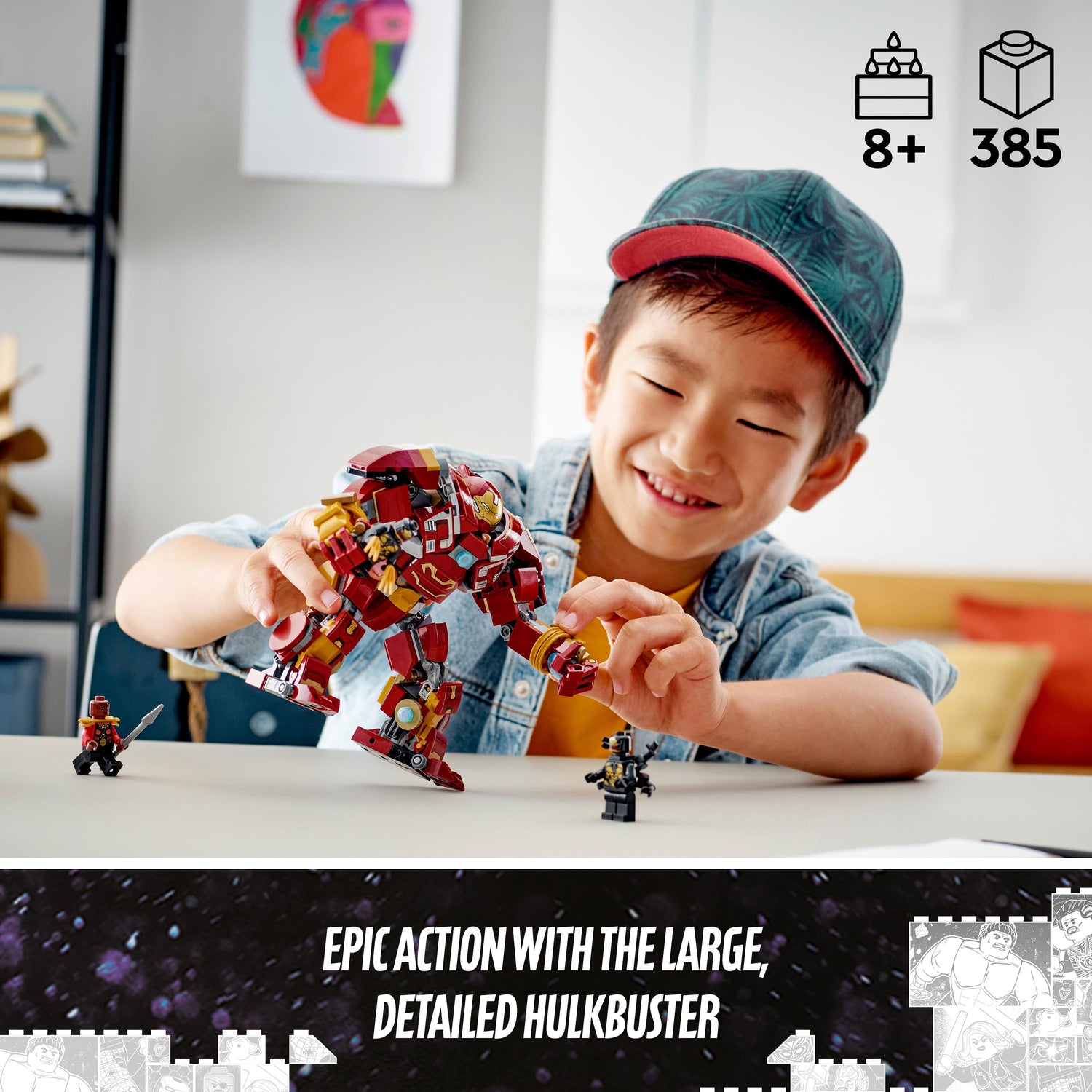 - The portable Hulkbuster mech action figure stands over 5 in. (15 cm) tall and makes a great addition to any LEGO Marvel building toy collection