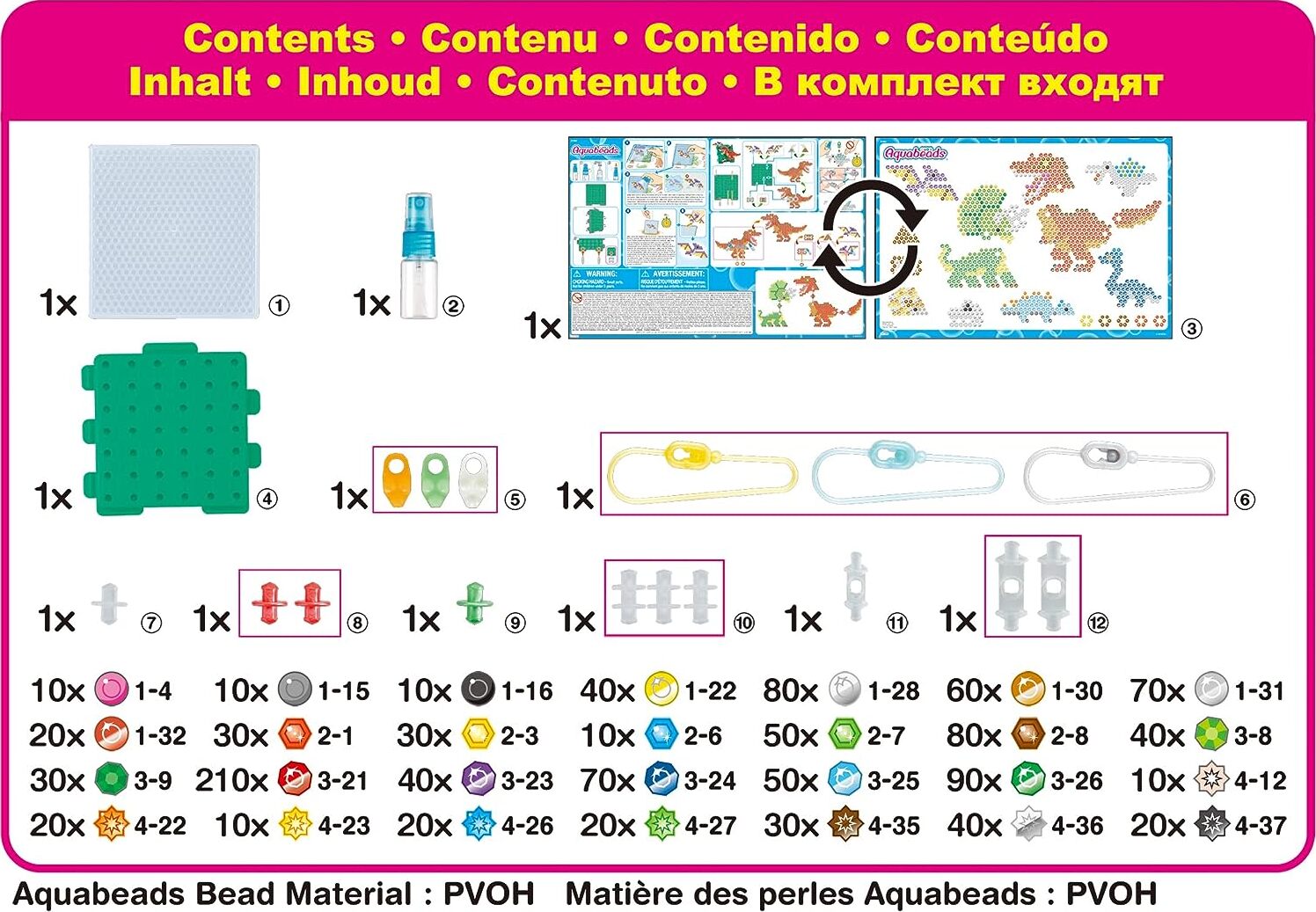 Use the design pegs to attach the bead design to the display. Design pegs also create movable heads and tails for the dinosaurs! Includes Solid Beads, Jewel Beads, Polygon Beads, and Star Beads, including the Shiny color beads with glitter feel. Create more bead designs with Aquabeads refills sold separately.