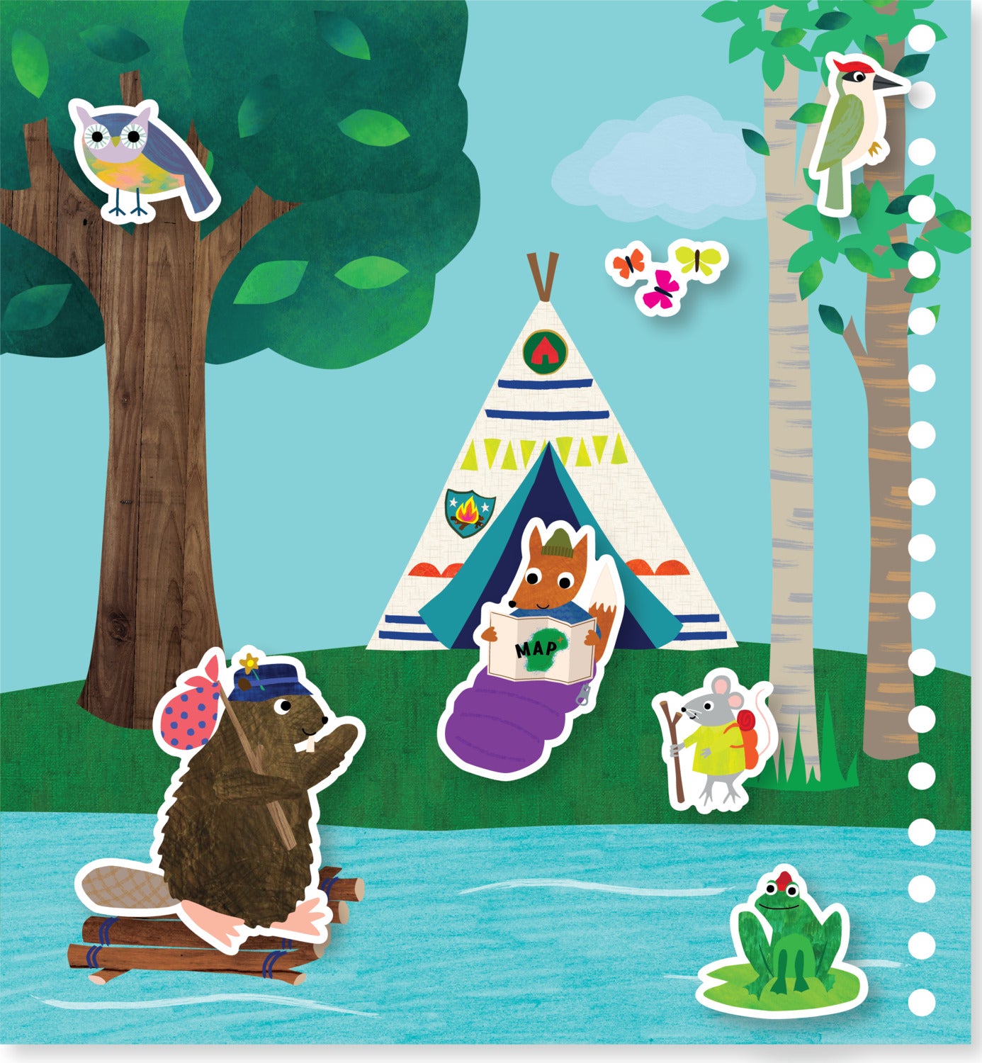 Floss & Rock's Adventure design features adorable adventure animals and cool camping friends.
