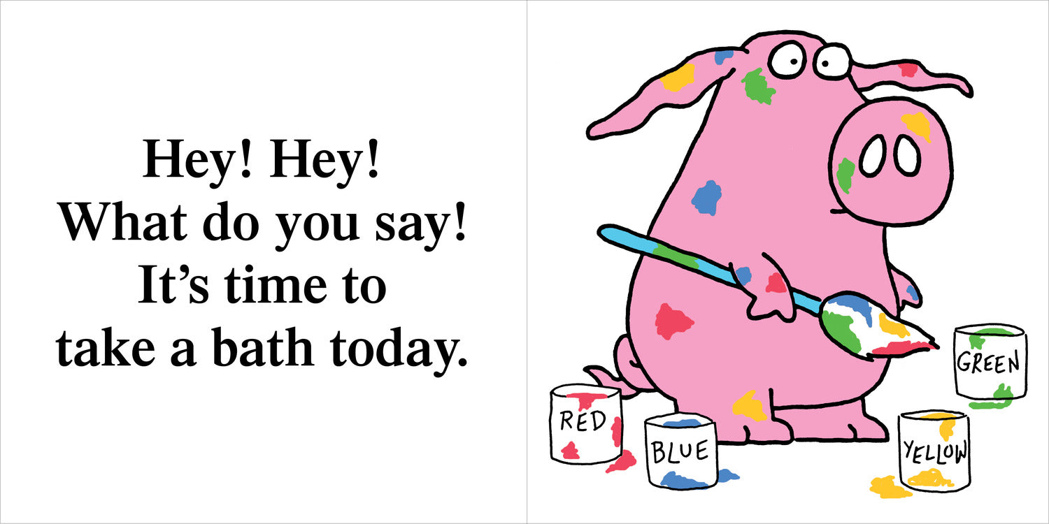 From the irrepressible Sandra Boynton, an irresistible storybook for bath time. It’s a classic tale of pig meets paint. Spattered with colors from a long day at the easel, the pig takes to the tub, washcloth in hoof, determined to get all pink and clean. On the last page, the snout has a bound-in squeaker. Get it? Squeaky clean?