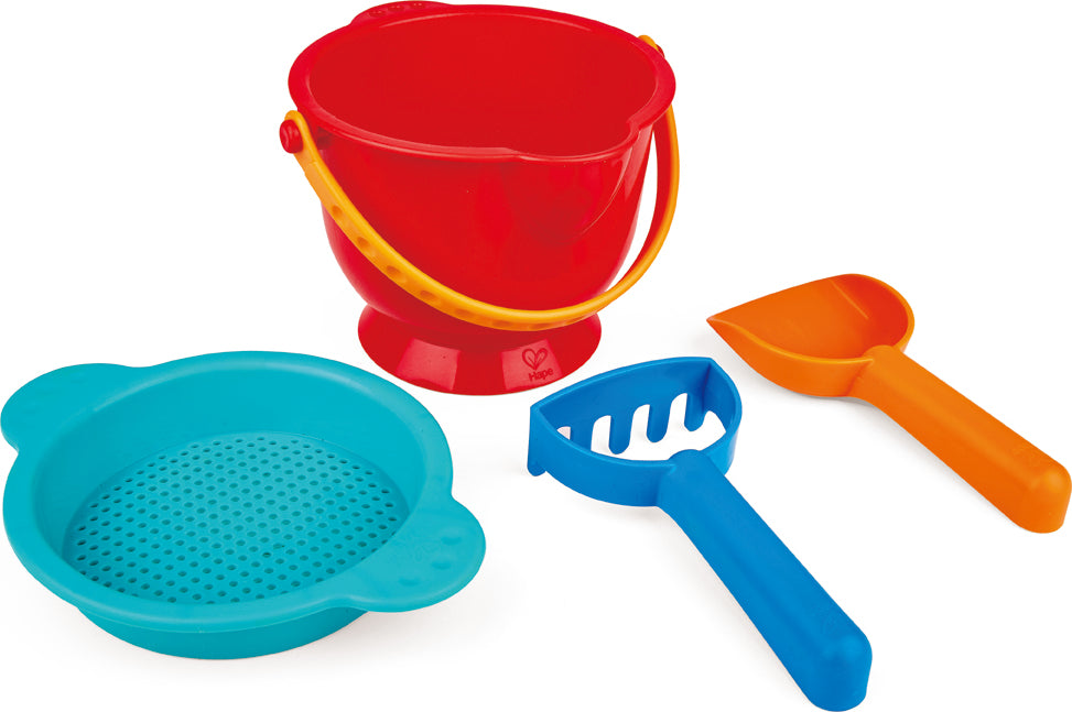 A pail, shovel, rake, and strainer. Just add sand for a perfect day at the beach.